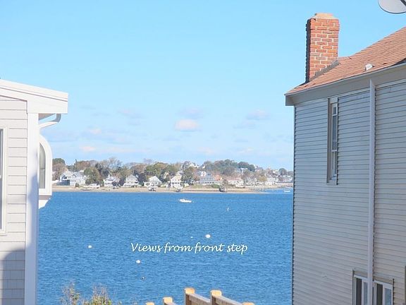 Enjoy the seabreezes and watch the boats go by from your own front porch. Even the bedrooms have water views. You can even cook with views of the water. NOT in a flood zone. Adorable colonial with large enclosed front porch with water views Quiet neighborhood with many recently updated higher priced homes.Updated tiled kitchen with new GAS stove and newer refrigerator. Pantry.1st floor laundry. 1st floor has beautiful hardwood floors. Fireplaced LR..Central A/C. Newer first floor tiled half bath. Sunfilled FOUR season room with sliders to large two tiered deck overlooking a good sized level fenced backyard with shed. Third room on second floor previously used as bedroom is perfect for office/sewing/nursery. New furnace installed 2012. Central Air. Many newer windows. Walk to the beach and Wessagusett Yacht Club.Close to Wessagussett Elementary.Close to Rt 3A & a short distance to the commuter boat and MBTA bus line.Close to the Hingham Shipyard shopping