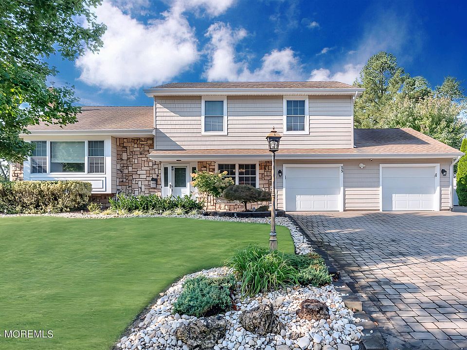 GORGEOUS 4 Bedroom, 3 Bath Home in desired Candlewood neighborhood! Home is FULLY updated throughout and features XL Great Room addition (27x19) with vaulted ceilings, fireplace and french doors. NEW (8 month) HVAC, Timberline 30 yr. roof, Andersen windows, hardwood flooring, cedar impression siding, updated kitchen with granite counters, updated baths, extra wide custom paver driveway with parking for 8+, updated premium flooring, custom molding, Primary Suite with ensuite, and fully finished partial basement. Relax and entertain in your gorgeous backyard oasis featuring private fenced in yard, Professional landscaping, 2 sheds, 10-zone irrigation system, fire pit, Pergola, pavers, and heated saltwater in-ground pool with waterfall. Close to shopping, highways, restaurants and shore