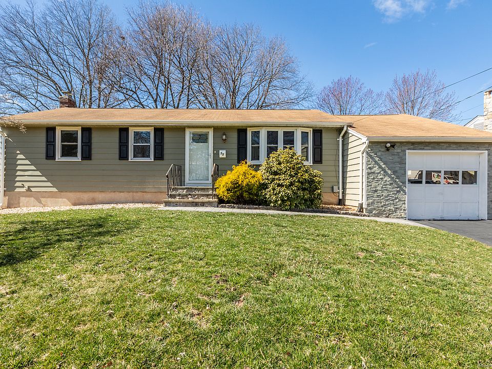 Picture Perfect- this three-bedroom, two-bath ranch-style home exudes charm! Offering an open-concept floor plan and a stunning modernized kitchen with granite, a beautiful island, and white shaker cabinets. Recent updates include recessed lighting, remodeled bathrooms, newer thermopane windows, C/A, a Tankless Combi Boiler/Water Heater, paver walkway with blue stone and hardwood flooring. The partially finished lower level with approx 500 SF offers even more space to be used as a family room, guest bedroom, office, recreation room, or gym, along with full bath-endless possibilities! Entertaining outside is a dream with the stunning paver patio and built-in firepit. It is truly a lovely home in a wonderful neighborhood-don't miss the chance to make this beautifully updated ranch your own.