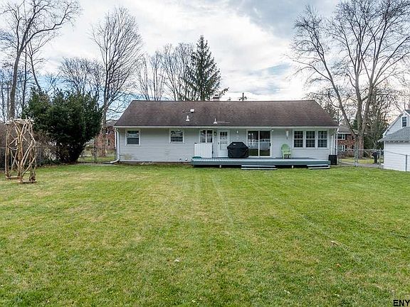 Conveniently located ranch style home, only 2 minutes from Slingerlands Elementary school, 5 min from Five Rivers with great highway access. Welcoming front porch, spacious, bright & freshly painted Living & Dining Rms, hardwood floors, remodeled full bath, master bd w partial bath, great finished basement serves as family or play room. Lots of storage, Vinyl replacement windows, NEW garage door, NEW hot water heater, New dishwasher. Roof 10 yrs young. Spacious fenced in yard w deck & shed. Home sweet home!