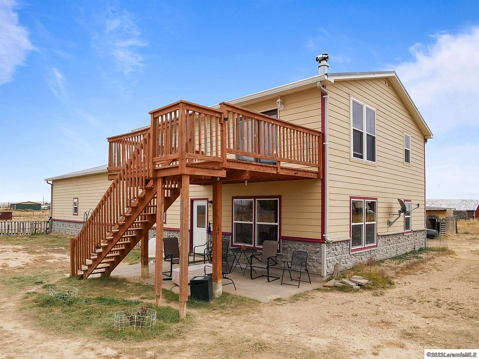 Charming 2-story, 4 bed, 2.5 bath, rural home on 1.06 acres, nestled directly on 9 Mile Lake, offering picturesque views. Features a deck, patio, and serene coy fish pond. Boasts apple trees, an outbuilding for storage, and an attached oversized 4-car garage/shop. Just 15 mins from downtown Laramie, it's a tranquil retreat. On 9 Mile Water District. Average monthly water bill is $83.00., it's a tranquil retreat. On 9 Mile Water District. Average monthly water bill is $83.00. Septic will be pumped prior to closing.