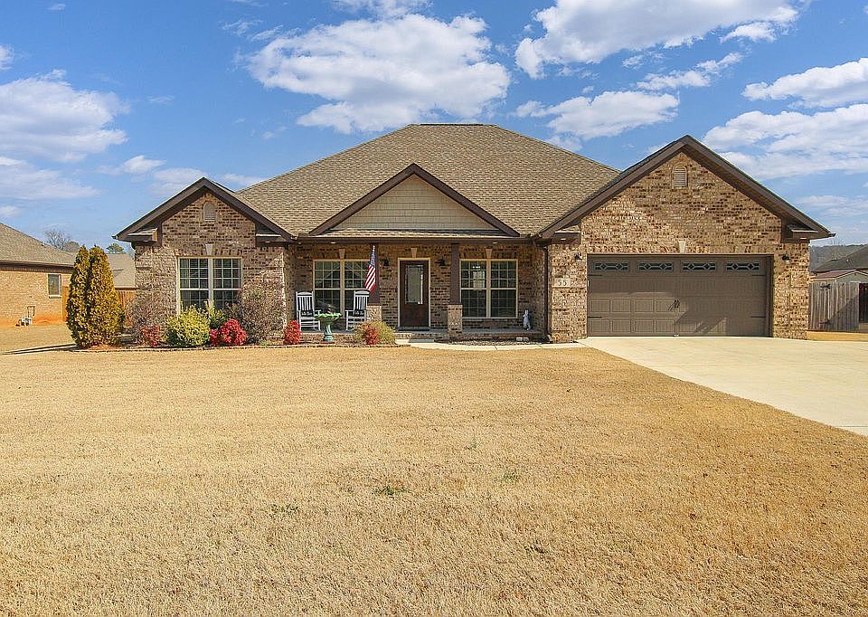 Welcome home! This 4 bed, 2 bath brick home built in 2016 includes a separate office, formal dining and breakfast nook. In addition to the attached 2-car garage, there is a 36’x11’ shop that is heated and cooled, has its own electrical service and has a utility sink with its own water heater. The kitchen has granite countertops, smudge-proof slate stainless steel appliances and a walk-in pantry. Amenities include 9’ ceilings with trey ceilings in the living room and master bedroom, crown molding throughout, ceiling fans in three bedrooms, electric heat pump and a gas log fireplace in the living room. There is carpet in three bedrooms, tile in the bathrooms and wood-look tile in all other areas. The backyard is fully fenced. No HOA! Close to I-65, Joe Wheeler Refuge, restaurants and grocery stores. Will pay buyer's agent 2.5%.