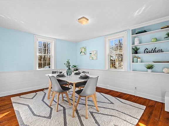 This charming cape style home is a beautiful blend of classic and modern design. The contemporary kitchen is fitted with upgrades and stainless steel appliances. White cabinetry, granite counter tops, modern amenities and the neutral tile flooring adds a soothing visual symmetry and elegance to the space. The dinning room includes custom shelving, chair rail molding and hardwood floors. The living room has a unique built-in bookcase that is highlighted with natural lighting and original, polished, wide-plank hardwood floor. The bathroom is newly remodeled and includes bead board wainscoting, an upgraded counter top, vanity and flooring. Main bedroom / flex space is located on the first floor; two bedrooms on the second floor with ample closet space, ceiling fans, and gorgeous dark wood custom built-in cabinets/drawers. Topping it off is the expansive, 9000 square foot fenced-in backyard outfitted with a large deck perfect for entertaining.
