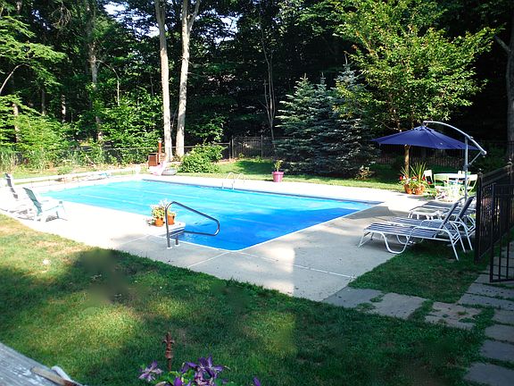 Cul de sac setting, natural gas, inground pool, newer siding, windows, roof, and underground utilities - just to name a few of the many reasons to make this spacious yet cozy colonial your next home. Bright kitchen with island opens to both an eating area with a beamed cathedral ceiling, as well as a family room with a cathedral ceiling. Large level fenced yard allows plenty of room for all activities. Gorgeous finished lower level with pellet stove and wet bar not included in square footage. Absolutely nothing to do but move in and unpack!