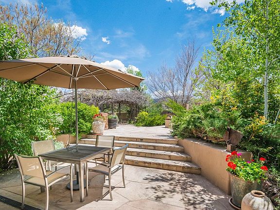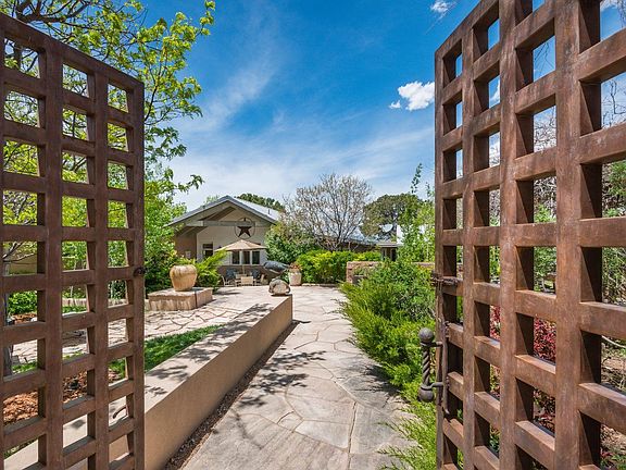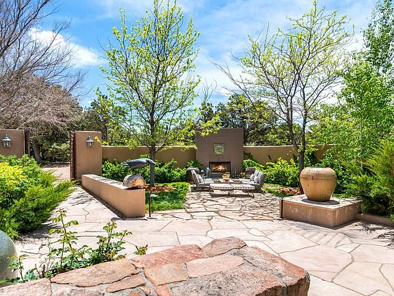 Located in the gated community of Los Caminitos in Tesuque, this Northern New Mexico style home truly embodies the charm and enchantment of classic, pitched roof homes, enhanced by the clean and contemporary interiors that the owners--a renowned artist and architect duo-- have lovingly crafted. The open kitchen is a chef's dream, featuring SieMatic cabinetry, two warming drawers, double ovens and dishwashers, a six-burner stove top with exhaust fan, a Carrera marble topped island with seating for four and abundant storage. The large dining area is centered between the kitchen and the living room with a fireplace flanked by French doors that lead to one of the numerous outdoor patios with views of the Jemez mountains. A guest suite with bath adjoins the living area, while an office is tucked between the kitchen and the family room that is centered on a fireplace, leading to the master suite and a third bedroom. The 5.9 acre lot features gorgeous outdoor areas and patios surrounding the home and offers views of the mountains in all directions. Truly a home to be seen and cherished. Dog friendly and close to hiking trails, Los Caminitos has a clubhouse, large pool and tennis courts for the enjoyment of all residents and their guests, and is sited between the Four Seasons resort and the world renowned Santa Fe Opera.