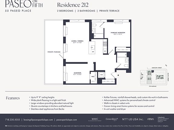 Paseo on Fifth is a vibrant new residential development in the heart of Park Slope, Brooklyn. Nestled within The Paseoa thoughtfully designed pedestrian passage where Fifth Avenue meets Sterling Placethis one-of-a-kind address offers a peaceful retreat amid the energy of the neighborhood. Framed by curated retail and local charm, The Paseo fosters a unique sense of community and calm just steps from home. Enter the exquisite residences at Paseo on Fifth, where sophisticated design meets modern practicality. From airy studios to expansive two-bedroom apartments, explore a range of layouts with luxurious finishes to enhance your daily living. Residences feature up to 10' 9" ceiling heights, wide plank flooring in a light oak finish, and floor-to-ceiling windows that flood interiors with natural light. Quartz countertops, custom tile work, and Kohler fixtures with rainfall showerheads elevate kitchens and baths with refined detail, while stainless steel appliances from Bosch and Samsung add modern functionality. At Paseo on Fifth, you will find an amenities suite that truly harmonizes with your daily rhythm. Dive into a meticulously designed environment where everything from the cutting-edge gym and yoga studio to the plush coworking spaces transforms everyday tasks into elements of a curated lifestyle. Seamlessly transition from productivity in our high-tech workspaces to relaxation in The Hub, each space crafted with a keen eye for function and style. Attended Lobby/Virtual Doorman Rooftop Garden Rooftop Terrace The Library Paseo Lobby Lounge The Courtyard The Hub The Suite The Gym & Yoga Studio Coworking Lounge Second Floor Terrace The Playhouse Crafts Studio Smart Package Room Bike Storage Laundry Convenience Resident Storage Onsite Valet Parking *Tenant Fees & Responsibilities* Prospective residents are responsible for the following fees, subject to lease or service agreement terms: Application Fee: $20 per person Security Deposit: 1 month's rent Amenities Fee: $50/month per tenant Storage: $50 - $75/month Bike Storage: $15/Month per bike Pet Fee: $25/month per pet Utilities: Rent includes hot water and sewage; residents cover electricity, cable, and internet. Schedule a tour today to experience life at Paseo Park Slope. Now Leasing. *Photos and renderings are representative and may not reflect the exact apartment.
