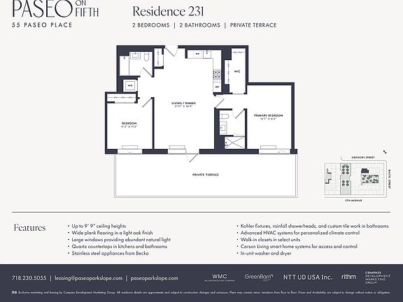 *LIMITED RESIDENCES WITH PRIVATE TERRACES SEE THEM BEFORE THEY'RE GONE.* Paseo on Fifth is a vibrant new residential development in the heart of Park Slope, Brooklyn. Nestled within The Paseoa thoughtfully designed pedestrian passage where Fifth Avenue meets Sterling Placethis one-of-a-kind address offers a peaceful retreat amid the energy of the neighborhood. Framed by curated retail and local charm, The Paseo fosters a unique sense of community and calm just steps from home. Enter the exquisite residences at Paseo on Fifth, where sophisticated design meets modern practicality. From airy studios to expansive two-bedroom apartments, explore a range of layouts with luxurious finishes to enhance your daily living. Residences feature up to 10' 9" ceiling heights, wide plank flooring in a light oak finish, and floor-to-ceiling windows that flood interiors with natural light. Quartz countertops, custom tile work, and Kohler fixtures with rainfall showerheads elevate kitchens and baths with refined detail, while stainless steel appliances from Bosch and Samsung add modern functionality. At Paseo on Fifth, you will find an amenities suite that truly harmonizes with your daily rhythm. Dive into a meticulously designed environment where everything from the cutting-edge gym and yoga studio to the plush coworking spaces transforms everyday tasks into elements of a curated lifestyle. Seamlessly transition from productivity in our high-tech workspaces to relaxation in The Hub, each space crafted with a keen eye for function and style. Attended Lobby/Virtual Doorman Rooftop Garden Rooftop Terrace The Library Paseo Lobby Lounge The Courtyard The Hub The Suite The Gym & Yoga Studio Coworking Lounge Second Floor Terrace The Playhouse Crafts Studio Smart Package Room Bike Storage Laundry Convenience Resident Storage Onsite Valet Parking *Tenant Fees & Responsibilities* Prospective residents are responsible for the following fees, subject to lease or service agreement terms: Application Fee: $20 per person Security Deposit: 1 month's rent Amenities Fee: $50/month per tenant Storage: $50 - $75/month Bike Storage: $15/Month per bike Pet Fee: $25/month per pet Utilities: Rent includes hot water and sewage; residents cover electricity, cable, and internet. Schedule a tour today to experience life at Paseo Park Slope. Now Leasing.