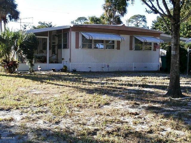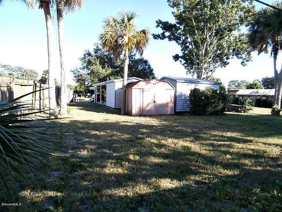 Great winter get away! Off 192, easy access to I95. 10 x 20 screened lanai allows all tropical breezes. 3 bedroom 2 full bathrooms includes washer and dryer. Porch and shed were added in 2005. Master bedroom could be used as in-law suite (has separate access). Also, includes 2 top of the line Robbins Sheds with 146mph wind rating wired for 220. Property is located near the end of the cul-de-sac street.