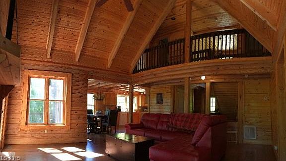 This charming log cabin offers a quiet, relaxing escape from the busy day-to-day grind. This is a great primary residence, weekend getaway, or rental. This lovely cabin has 4 bedrooms and 3 and a half baths. Vaulted ceiling in the living room. Wrap around deck for great views. Recently updated finished basement would make for a great game room. This home is being with all appliances and furnishings convey. Additions also include whole house water filtration and climate control.