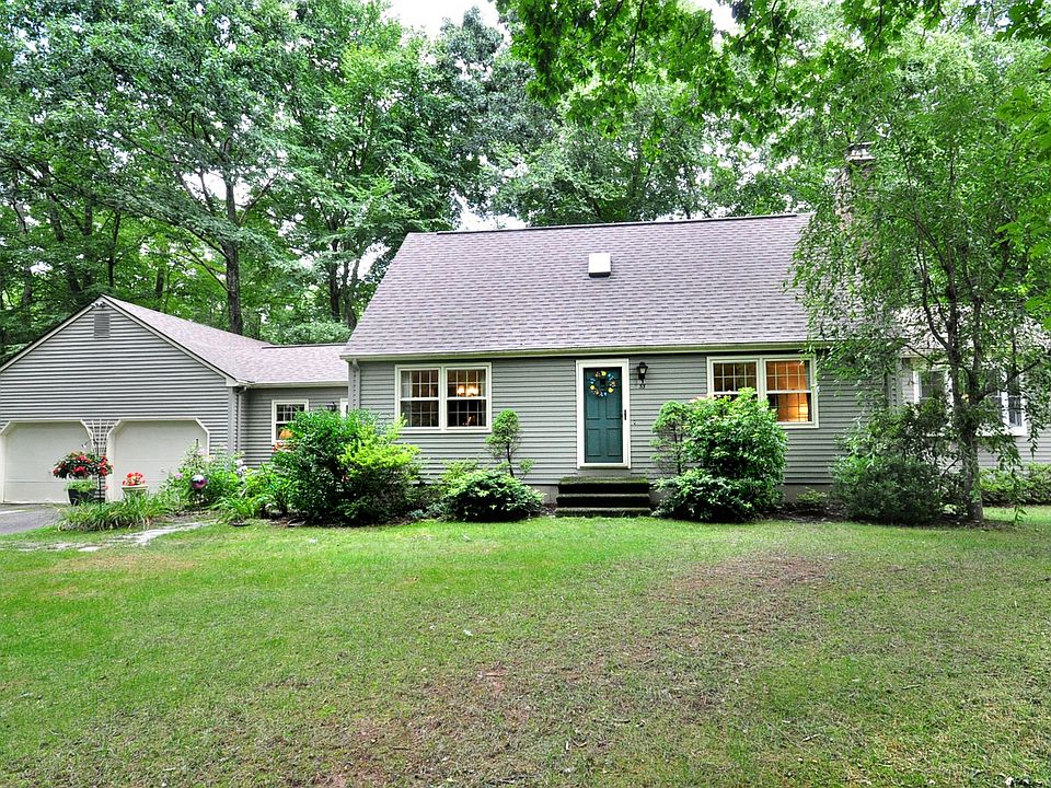 Welcome to this turn-key, 3 bedroom, 2 bath Cape located just minutes from Granby Center on a picturesque country rd. Pride of ownership shines in this well-maintained home, offering a beautifully remodeled kitchen with abundant cherry cabinets, a center island, quartz countertops, & stainless-steel appliances, including an induction cooktop & double electric ovens. The kitchen seamlessly opens to the dining room, featuring crown molding & chair rail, & leads to a cozy family room with custom built-ins. From here, step into the 3-season room that opens to a patio-perfect for barbecues overlooking the serene backyard. The first floor also features a fireplaced living room, a spacious primary bedroom with a cathedral ceiling, ceiling fan, & new carpet (2022), a home office, and a remodeled full bath with a tiled shower. Upstairs, you'll find two generously sized bedrooms & a full bath. The full basement offers plenty of storage & is ready for finishing if additional space is needed. This home also boasts a 2-car attached garage & numerous updates, including, roof & skylights (2018), chimney liner (2018), new burner (2020) well pump (2022), septic tank (2004), Leaf gutter guards (2020), & a remodeled first-floor bath (2021), among many others. Located just minutes from Granby Center, this fabulous location is near Copper Hill Golf Course, shopping, restaurants, farm-fresh produce, hiking, biking, and horse trails, McLean Game Refuge, parks, the YMCA, & Bradley Int. Airport and both Hartford and Springfield. Truly move-in ready-just unpack and enjoy!