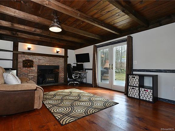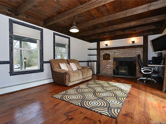 Beautiful Country Cape on lovely Neighborhood Cul de Sac close to RI Line. Large Family Room with big brick fireplace with wood stove. Sunny Eat in Kitchen with soap stone counters, maple cabinets and stainless steel appliances. Front Dining room & Living Rooms with Wide Pine floors. Back first floor bedroom with wood floors - close to First Floor full Bath. Uppper level have 2 large front to back bedrooms. Master has cathedral ceilings, His & hers cedar closets and tiled bath with shower. Lower level has new high efficiency Buderus boiler fuled by propane. Laundry area. Large Deck with woodstove in Back to enjoy your big .93 acre lot. Inviting covered front porch. Shed. Property is close to shopping and 395 highway