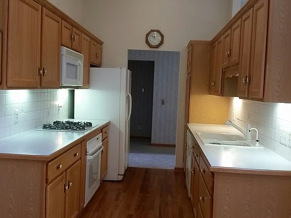 Well maintained condo in a quiet neighborhood: 2 large bedrooms on 1st floor 2 bathrooms on 1st floor Oak flooring in kitchen and dining area Oak trim around windows and doors Oak cupboards in kitchen with lower pull out shelving Skylight in breakfast area Slate in foyer area Large closets with custom organizers Lighted walk-in closet in master bedroom Custom made window treatments Ceiling fans in living room and bedrooms 800 sq ft finished basement with additional bathroom Utility sink in basement 10x20 deck (composite board) with remote awning Neutral berber carpeting Neutral walls throughout Huge storage area in basement with shelving Access to additional large crawl space New air conditioner, hot water heater 1st floor laundry All appliances including washer/dryer 2 car garage UV treated windows Cash or conventional loan only. MUST be pre-approved before viewing.