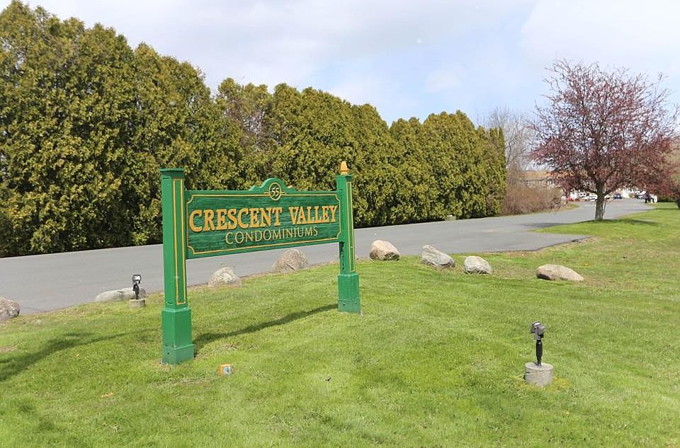 WOW!! THIS IS THE BEST DEAL IN GRANBY! Check out this spacious townhouse unit, located in the well maintained Crescent Valley Condo Complex! Main level offers kitchen with all newer appliances to remain for the buyers enjoyment. Open dining/living room area with laminate flooring and a fireplace leads to private deck overlooking lush green outdoor space. This level is rounded off with a half bath. Upstairs you will find two generous bedrooms, the master has a walk in closet and its own private balcony and this level is completed with a full bath. Basement is partially finished and could be additional living area with a few modifications. Updates over the years include slider on first floor, gas furnace and water heater. Two assigned parking spots. Location offers easy access to all area colleges and amenities. Showings begin at Open House, Saturday July 11, 2020 from 11:00 am to 1:00 pm, hope to see you there!