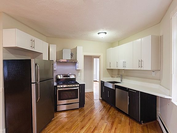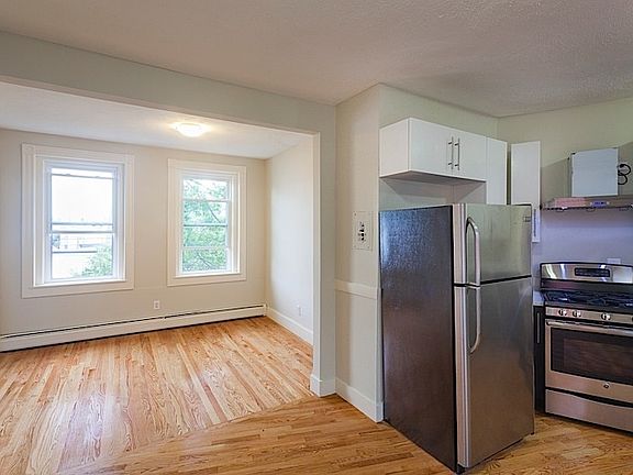 Renovated European kitchen with stainless appliances and chefs hood. 3rd floor in brick bldg, Smaller 3rd bedroom. Hot Water included. 7 min walk Kendall Sq/Central Sq/MIT, shared brick patio, common courtyard, Coin-op laundry.