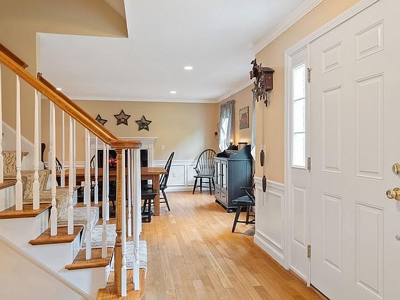 HAVEN OF TRANQUILITY. Escape to the idyllic surrounds of a professionally landscaped 1.5+ acre mature treeline lot, neighboring farmland. Upon entering find a foyer leading you to a fireplace accented DR & LR dressed in wainscoting. Center stage find a large island highlighting custom white cabinetry & eat-in Kitchen flowing into the remainder of the main level with a front to back FR w/ fireplace, Full BA, & a laundry room. Upstairs is a Master BDRM w/ BA boasting a jetted tub, walk-in shower, & built-in vanity plus 3 addtâl BDRMS and another Full BA. A finished attic allows for additional sleeping space or a unique room of your choice. The lower level offers a finished basement w/ access to the 2 car insulated garage. Step out on the back deck to take in the scenery & fenced backyard with a fire pit overlooking pond. Located a short distance from hiking/walking trails, town & tax free NH. Move right in & enjoy this meticulously maintained home.