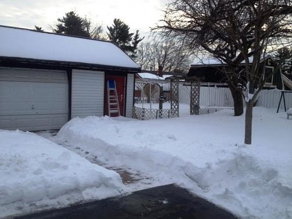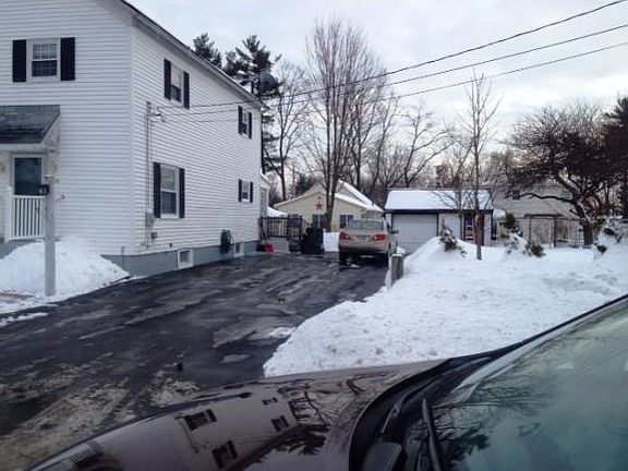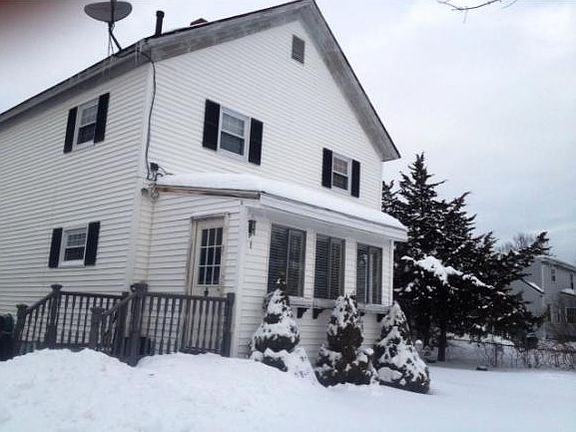 Situated on a very lg partially fenced lot; deeply set back from the street, this New Englander can be a 3 bedrm home w/large master bedroom/sitting room or 3 bedrms with play/study area or 4 bedrms/den/family room on first floor. The updated kitchen has newer stainless appliances, tile floor, light birch type cabinets and a small pantry. Hardwood floors found thru most of home both upstairs & down. A lg heated back porch/sun room overlooks the wonderful yard & is a great place to lounge in warmer days to watch the birds/ children/pets or just keep an eye on your garden. Right now its a perfect mud room entry, keeping snow/mud coats/boots/mittens etc. under control. Enjoy economical NATURAL gas heat/hotwater, newer vinyl windows and vinyl siding. Still lots of potential to be had in this home with a partially finished lower level that already has a three quarter bath. Some ceiling attention needed. Detached shed/garage w/plenty of of parking Close to major routes, shopping & airport.
