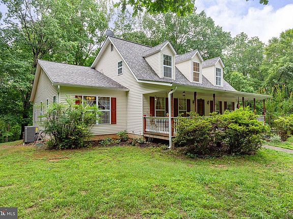 A country paradise in an equestrian community located on 10 acres in Stafford County is here! Introducing 55 Queen Marys Lane. The residence here includes three bedrooms, three baths and approximately 2,100 square feet, plus a basement. It sits on a 10-acre lot in western Stafford County within an horse friendly community. The community includes 79 total homes, a community horse barn, horse trails and road maintenance perks like snow plowing. From Queen Marys Lane, a long gravel driveway leads you to the tranquil residence. The home stands out amid a landscape of magnolias, crepe myrtles, mature trees and mountain laurel bushes donning its frontside. For parking, there is a detached, dome- shaped garage, which is fully-equipped with lighting, electricity and a work bench. For taking in the front yard, there is a huge front porch! The back yard dazzles with a sweeping 20x40-foot wooden deck for watching nature entertain you year-round! Otherwise, the back of the property is lush with trees, with a hill leading down to a winding creek. The home itself pops amid the landscape with cream siding, barn red-colored shutters and a white and red pillared front porch. Note that the roof is new as of 2020 and the AC was just fully replaced in 2025! Heading inside, we have two above ground levels. The main level – which primarily has hardwood flooring – includes a dining room; a living room with cathedral ceilings, exposed wooden beam features, skylights and two sets of sliding glass doors to the deck; the laundry room; a half bath; and the kitchen. The kitchen includes antique white-hued cabinets, an island with a Jenn-Air oven, granite countertops and LVP flooring. We do have two main level bedroom suites, too, each with access to their own full baths! The suite on the frontside of the home includes an ensuite bath with a tub/shower/combo and single vanity. The other main level suite – considered the primary – includes a spacious walk-in closet, direct access to that supersized back deck (!) and an ensuite bath complete with a soaking tub, stand-up shower and double sink. Wow! Heading upstairs, you’ll find the home’s final bedroom and full bath. The bedroom includes newer carpet (updated two years ago) and a walk-in closet. The full bath upstairs includes a tub/shower combo and a single sink. And, rounding out the level are an office space with hardwood flooring and a lovely breezeway. We do have an unfinished basement here, too, with a walkout exit! The basement includes rough-in plumbing for a possible bathroom and there is plenty of wiggle room for a bedroom, should your heart desire. Beyond the homesite, you’re within a 15-minute drive of the Gauntlet Golf Club and recreation selections aplenty at Curtis Memorial Park. Ample grocery, shopping and dining selections await along Route 17 within 20 minutes. I-95 access (Route 17) is within 25 minutes and the heart of Downtown Fredericksburg is 30 minutes southeast. Your slice of tranquil heaven – inside and out - is waiting at 55 Queen Marys Lane!