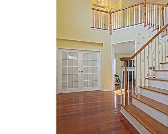 Welcome home to this gorgeous, K. Hovnanian home right across from the lake in Traditions at Chesterfield. The dramatic 2-story foyer leads you into the open floor plan of the main level with neutral d~cor, gleaming hardwood floors and plenty of space for entertaining. The gourmet kitchen offers an oversized island with beautiful 42" cabinets, granite countertops, stainless steel appliances and breakfast nook. The rooms are spacious, with 9 foot ceilings, plenty of natural light and the den is finished off with a gas fireplace. The formal living room has French doors for additional privacy or making it the perfect office or guest room. The master suite offers two walk-in closets, luxurious bath with Jacuzzi tub, shower stall and double vanities. There are 3 additional generously sized bedrooms on the 2nd floor with a full bathroom to share as well as an upstairs laundry room. The exterior is beautifully landscaped with a built in irrigation system and situated directly across the street from the lake. Two car garage plus full basement just waiting to be finished with an upgraded 200-amp electrical panel. A minutes walk to Fenton Lane Park where you will find baseball fields, soccer fields and a running track...also located around the block from the playground, convenient for everyone!
