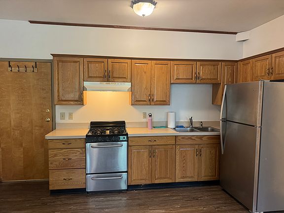 Recently redone second floor one bedroom. Features gas fireplace, new wall to wall carpeting, kitchen with gas range and refrigerator, and ceiling fans in bedroom and living room. One year lease, absolutely no pets and absolutely no smoking. Credit score 650 or better. Off street parking. On site laundry. Quiet building. Close to shopping and highways. Tenant pays, gas, electric, and water. 1 year lease. No smoking, no cats and no dogs