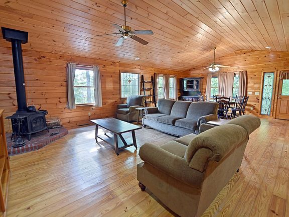 Now this is Cabin Living! Enjoy some Peaceful Cabin Living on this 1.05 Acres of Unrestricted Acres. Partially Furnished Cabin with Two Separate Living Areas with 2 Kitchens, Living Room & 3 Bed 2.5 Baths + Laundry on Main. Large Open Main Living Area with Dining Room, Great-Room & Kitchen with Lots of Cabinetry and CounterTop Space. Cozy Vented Wood Stove on Main, Fenced-In Backyard. Time to BBQ: Grilling Area & Picnic Area Already set up for Summer! Fabulous Location: Close to the Prestigious Lake Nottely for Fishing, Boating & Kayaking! STR Potential but you must get a Business License from Union County. Time to Make this Cabin your North GA Mtn Getaway!