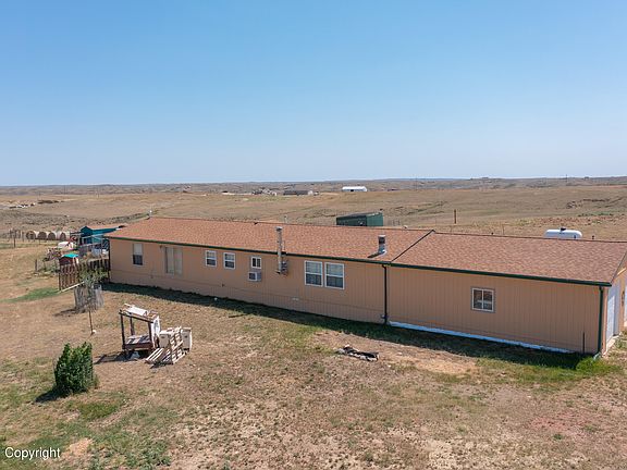 20 acres of Wyoming land, extremely private and situated out of town where only the expansive prairie is your view! This original location manufactured home offers you 3 bed, 2 bath with an open layout, new pellet stove for cozy winters and efficient heating, updates throughout including but not limited to flooring, paint and more. An attached 2 car garage shelters your vehicles from the elements. Fenced property line was just redone and is ready for your horses or cows. Plenty of outer buildings for animals.