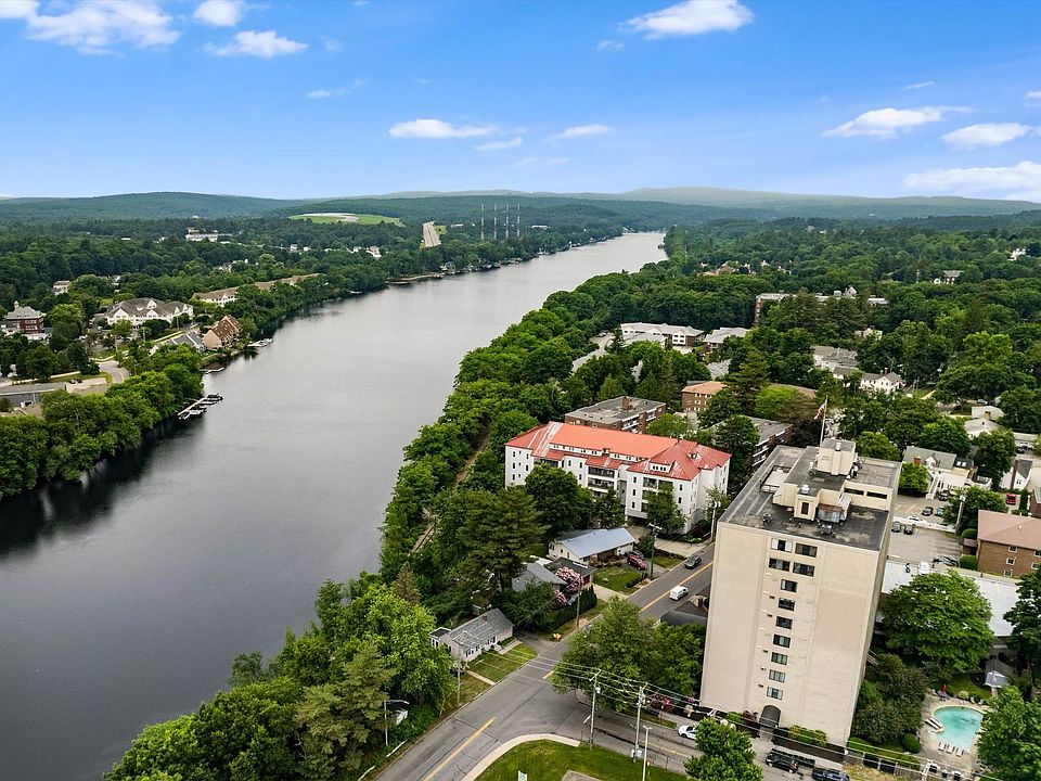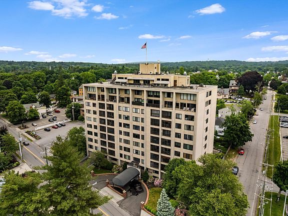 LUXURY LIVING AT THE TOP! YOUR PENTHOUSE IN THE CITY AWAITS! Splendidly located in a most secure building set among manicured grounds in a coveted zip code, enjoy an urban lifestyle like no other minutes from Manchester’s vibrant culinary and arts scene in an ideal commuter location. Park your car in one of two deeded, prime covered spots in the garage where elevators whisk you up to the top floor. Enter and you’re greeted by two stories of glass that take in sweeping easterly views of sky, trees and rolling hills in the distance. Greet the sunrise in the spacious living room open to the floor above where striking wood beams and open staircase make for stylish living. Bring your coffee outside to the balcony that stretches the length of your main floor as you listen to birdsong and make preparations for the day ahead. Enjoy a quick workout in the mirrored gym before meal prep in a chef’s kitchen that is a symphony of black granite countertops contrasted with crisp white cabinetry. Host memorable meals in the dining room as golden hour light sets the scene. Ascend the open staircase to the primary bedroom where ensuite bath and walk-through dressing room and closet will pamper you. Guests will enjoy their own bed and bath on the same floor and stunning views of the historic north end. Lifestyle amenities include an inground pool and grill deck with propane provided by the HOA, common areas and library. You can have it all! RARELY AVAILABLE…COME AND SEE WHY!