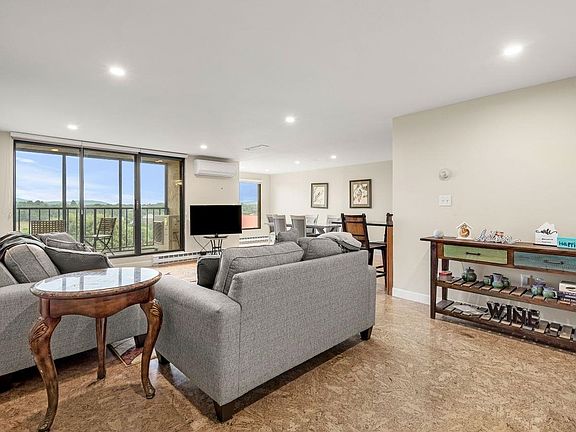 Experience Luxury Living, in one of downtown Manchester's exclusive condominiums. Enjoy Beautiful Views of the Merrimack River from the 8th floor. Enter into the spacious living room with glass sliders and amazing views. The kitchen is fully applianced and features a breakfast bar. Enjoy sitting on your own private balcony with both river and city views. Off the living room is the 2nd smaller bedroom, perfect for an office or guest space. The primary bedroom suite has its own bath. This unit comes with 2 deeded parking spaces in the garage. Amenities include central AC, covered garage parking, pool and common rooms, with water, sewer and trash included in the condo fee. Enjoy this walkable downtown location, close to restaurants, entertainment and the highway. Don't Delay! Schedule your private showing today.