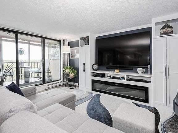 Welcome to elevated living on the 8th floor of one of the North End’s most desirable high-rises! This beautifully renovated 2-bedroom, 2-bath condo offers breathtaking river views and modern luxury at every turn. Step inside to discover a designer-inspired interior featuring a high-end kitchen with top-of-the-line appliances, elegant built-ins in the dining and living rooms, brand-new flooring, updated windows, and a spacious walk-in closet in the primary suite. Freshly painted and filled with natural light, this home is the perfect blend of comfort and style. Enjoy peaceful evenings on your screened-in deck overlooking the water—ideal for catching sunsets and relaxing in the open air. The building’s amenities are second to none: elevator, pool, gym, library, conference area, and deeded covered parking. Unbeatable location within walking distance to restaurants, shopping, music venues, theaters, and schools, plus easy access to major highways for commuters. This is your chance to own a truly turn-key home in a prime location—don’t miss out! Opportunity is knocking.