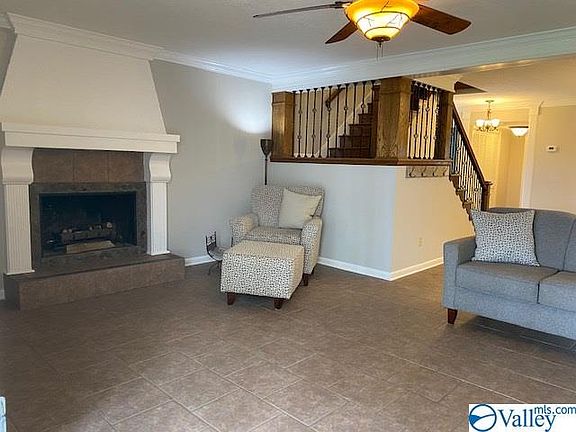 - LIVING ROOM DESC: Fireplace, Crown Mold, Ceiling Fan, Tile