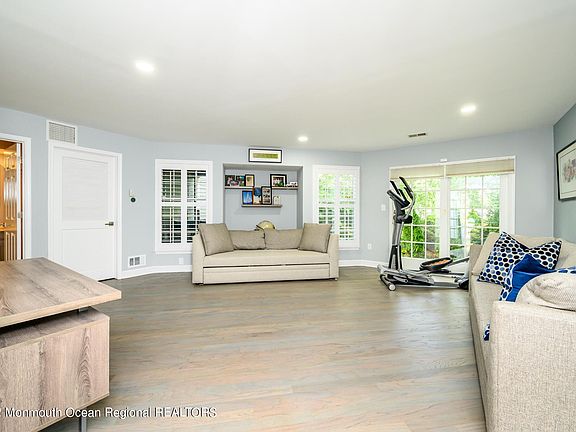 Stunning 2 Bed 3.5 Bath Turn-Key Townhome with Master Suite & 2 Car Garage in the desirable Rivergate Community is sure to impress! Meticulously maintained inside & out with undeniable curb appeal & modern upgrades all through, completely move-in-ready & waiting for you! This beautiful home boasts a deeded Boat slip, Dock access, 2 Decks to enjoy & a prime location, close to iconic Jersey Shore beaches, restaurants & bustling Pier Village. Step in to find a spacious, light & bright interior w/gorgeous HW flrs, recessed lighting, trendy Plantation shutters & a crisp cooling palette all through that is easy to customize. Large Living rm holds a cozy Gas Fireplace, perfect for entertaining. Upgraded Gourmet Eat-in-Kitchen offers NEW SS Smart GE Appliances, luxe Quartz counters + backsplash, large center island & built-in bottle rack.1/2 Bath finished off this main floor. Upstairs, 2 generously sized Bedrooms offering a private full bath in each. MBR boasts a raised ceiling, 2 WICs & blissful ensuite bath with dual vanity inc a fog free lighted mirror, glass stall shower + soaking tub. Finished lower lvl holds a large Family rm with French slider to the rear Yard & 1 more convenient Full Bath, great for a 3rd Bedroom or House Guests! Quaint Yard backs to peaceful + private wooded views. Oversized 2 Car Garage with MyQ door opener & Smart Tech to boast - Security System, Ring Doorbell, Nest Thermostats, the list goes on! TRULY a MOVE-in-READY MUST SEE!