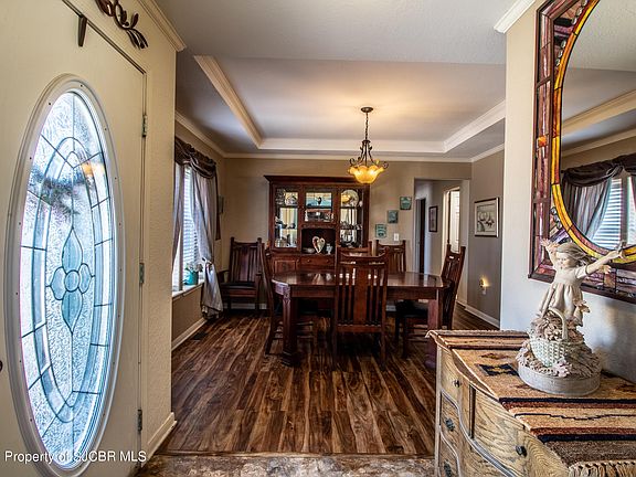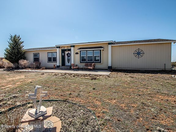 Gorgeous Mountain Views! Great location for Durango commuters. Beautiful 2008 Solitaire doublewide on permanent foundation offers quality and style throughout. 2184 sq. ft with 4 Bedroom 2.5 Baths, Large open living room with fireplace and built in bookshelves, spacious kitchen with new appliances, formal dining, peacefully master bathroom with soaking tub, 3+ acres with barn, shed and storage backing up to BLM Land. Newer flooring throughout most of the home, seller will give flooring allowance for 3 bedrooms with an acceptable offer.