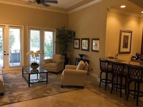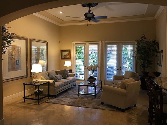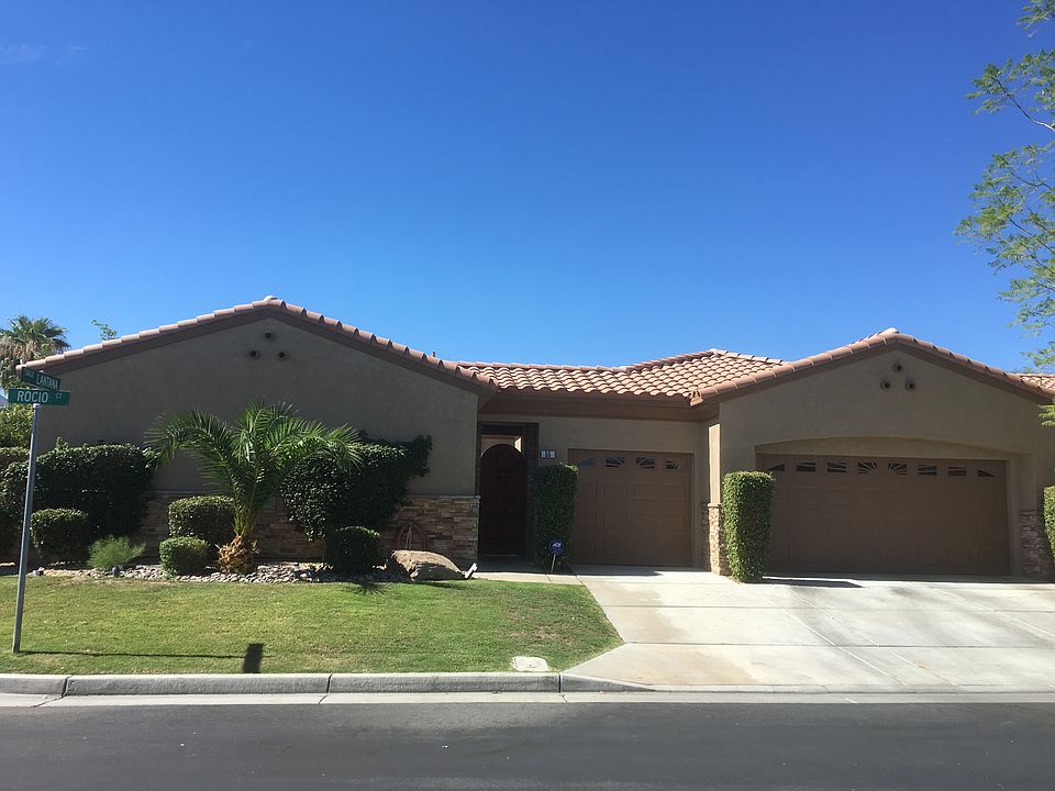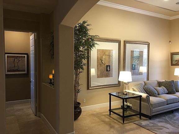 RECENTLY RENOVATED, Location +! Large family home in the desirable gated Palm Desert community of Lantana. Lots of upgrades: stacked stome in exterior, chef's kitchen with high end stainless steel appliances, travertine tile floors throughout, slab granite kitchen counters, crown molding throughout, marble slab bathroom counter tops, Hunter Douglas blinds, private courtyard pool with waterfall, built in BBQ area and newly finished patio, rear yard firplace. This lovely home has 4 bedrooms + den, 3.5 bathrooms, including detached casita and triple car garage. Save $$ with the Solar power purchase package. This small enclave of 59 homes has its own private dogpark for Residents' use. Owner is a licensed CA Realtor. See virtual home tour and request the casita tour.