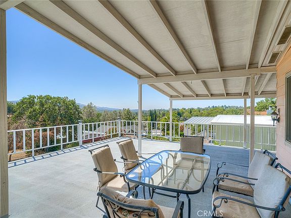Exceptional opportunity to own this beautiful, well-maintained manufactured home. Only minutes from Bidwell Marina on Lake Oroville for fishing, boating and additional recreational opportunities. You will love the large wrap-around front deck, the enclosed bonus room and work room with views of the east foothills as well as a peek-a-boo view of Miner's Ranch Reservoir. A metal carport near the entrance door allows easy access to the home with just a few steps and there are three additional, attached carports on the lower level. Also, there's plenty of additional parking with a driveway and parking area. There are also several rooms on the lower level, including a partial bath, that are not included in the square footage. This area could be used as a great man cave, wine room, music room, sewing room or many other options. The home has newer laminate flooring and an updated kitchen with Corian counters. The family room has a large wood stove that keeps the home cozy and there are ceiling fans in the bedrooms, family room, dining room and patio. A new central heating and air unit was installed last year and the propane tank is owned. The backyard patio area has a very large pear tree which is bearing plenty of fruit that is almost ready to pick. Other fruit trees include lemon, orange, grapefruit and pomegranate. There is a water filter system in one of the lower rooms and a refrigerator and freezer in the work room that will remain. Don't miss the opportunity to own this special place in a great location! Call to view this property today.