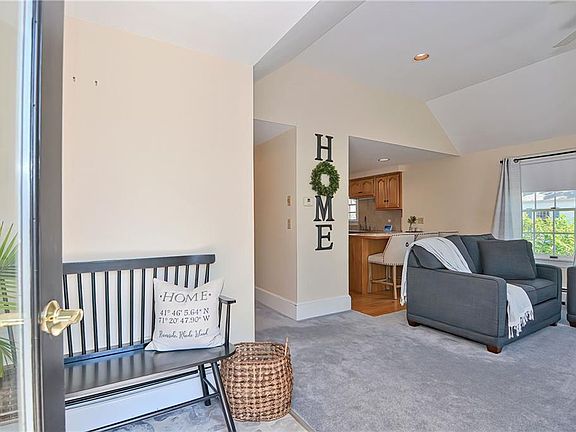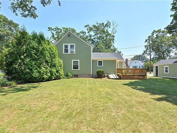 HIGHEST AND BEST DUE MONDAY 8/16 at 5:00PM. Charming cape situated on a landscaped, corner lot in desirable Riverside! The exterior of this home is equipped with a carefully designed garden that will bloom from early spring to fall, a single stall garage, newer deck and roof, and stone front entry. The oversized windows leave the the main level bright and airy throughout the day. Upon entrance through the mudroom, you'll be welcomed into the living room which boasts cathedral ceilings, recessed lighting and new wall to wall carpeting. Gorgeous refinished oak hardwood flooring are throughout the kitchen, formal dining room, and bonus room/office. A full guest bathroom is also located on the main level. The second level offers two ample sized bedrooms with soothing Benjamin Moore paint colors and a private full bath. The basement features two additional rooms and a storage area. Easy commute to Providence, quick access to highways, close to the East Bay bike path and the nearby parks.
