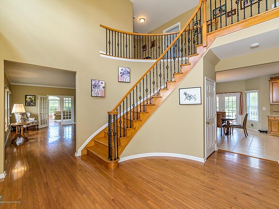 Country living at it's finest! This gorgeous Custom home sits on 6 acres of beautifully landscaped grounds that is infinite! The views are breathtaking & one of a kind, but wait until you get inside. 2 Story Foyer welcomes you to a home filled w/sophistication. Throughout you'll find gleaming HW Flrs, Crown Moldings, Neutral tones & a plethora of top of the line designs. Every rm is spacious & bright w/stunning vistas of this horseland property. Gourmet EIK leads to the rear Trex deck looking over the backyard oasis. 4 massive sized BRs make up the 2nd lvl. Incl. the blissful Master Suite feat. stylish Tray Ceiling, XL Sitting Rm, huge WIC & Tranquil En Suite Bath. Partially finished basement features it's own custom Gym/Dance Studio. 3 Car oversized garage + detached, too. I/G Grecian