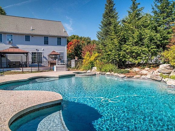 This home is designed for entertaining and relaxing around your heated free-form inground gunite pool plus waterfall and spa pool; enclosed with wrought iron fencing. Privately elevated from street with fenced yard. Country style 30ft Kitchen has stainless steel appliances and new granite counters; versatile room situated next to kitchen for use as Office or Playroom. Step onto 29ft mahoghany sundeck w/ canopied grilling and sitting areas. Oak floors throughout all finished levels. Exceptional Family Room is complimented with french doors to beautiful, custom 3-Seasons Room...providing another viewing of your backyard oasis. Family Room greets you with granite faced fireplace, raised cathedral ceiling, skylight, and conversational sitting area. Lower level provides Game Room for more fun! Master Bedroom with walk-in closet and Master Bath. Expansive walk-up 3rd level offer 700sf handy storage or potential living area. 3 Full baths
