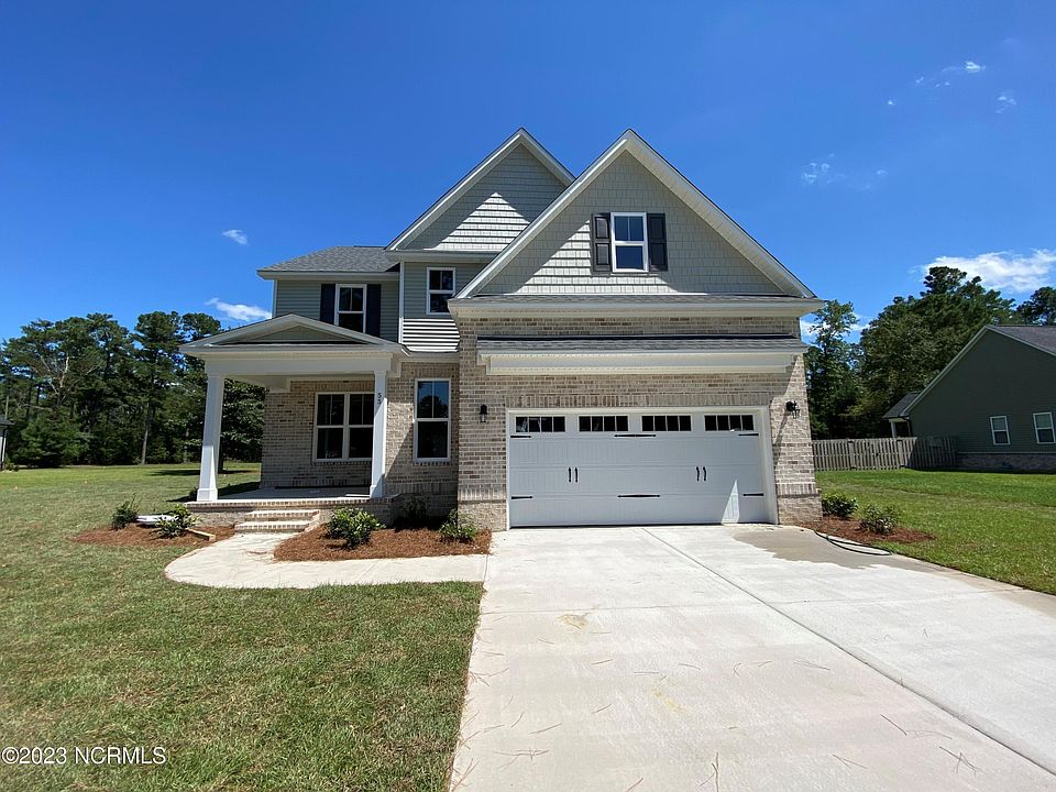 Brand New and Move-in Ready! The beautiful ''Armstrong'' offers 4 bedrooms, 3.5 baths, a media room, formal dining room, sunroom, rear screened porch, a finished two car garage and is situated on over half an acre backing up to a lovely treeline! The spacious kitchen is a home chef's dream with soft-close, shaker-style cabinetry in a gorgeous light ''stone gray'' finish, stunning '''Cosmos Carrara'' quartz countertops, a classic subway tile backsplash, pendant lights, large pantry and Frigidaire Gallery stainless steel appliances including a french door refrigerator & a gas range. The bright sunroom is just off the kitchen and is the perfect spot to enjoy your morning coffee, and lends access to the large screened porch. The great room features an inviting fireplace for chilly evenings. The upstairs primary suite features a cozy sitting area, laminate hardwood flooring, a trey ceiling and an attached bath offering a double vanity with luxurious marble countertops, a beautiful tile shower with frameless shower door & a walk-in closet. An inviting guest suite with attached bath, two additional bedrooms, a 3rd full bath, a media /flex room and a laundry room complete the 2nd floor. The home's stunning coastal-inspired interior was skillfully planned by our in-house designer and carries a calming neutral color palette throughout. Luxury features include stunning laminate hardwood flooring throughout the downstairs, tile flooring in the laundry and baths, lovely wainscoting in the dining room, 5'' baseboards & thoughtful trim details, Moen plumbing fixtures, elevated lighting package, a propane gas fireplace, a convenient utility sink in the finished garage, 2'' faux wood blinds, exterior coach & flood lights, gutters, & more!