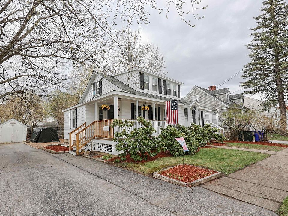 OFFER DEADLINE: Tuesday, April 25th at 2pm. Pride of ownership shines through with this Classic Cape!! The newly painted covered porch welcomes you home to relax and lends the perfect backdrop for stunning seasonal blooms. Enter into the light and bright updated eat-in kitchen with new stainless steel appliances, cabinets, vinyl flooring and countertops!! Spacious living room with direct entry front door and newly installed modern vinyl flooring. Completely updated full bath with double vanities is also checked off the list of upgrades. The primary bedroom is located on the 1st floor along with a den offering wonderful flex options for work or play. 2nd floor boasts 2 identically sized bedrooms with charming closet details. Laundry is located in the full basement with shelving options for all your storage needs. Plenty of off-street parking with an oversized driveway accommodating 4+ vehicles. Level yard lends an endless array of options for outside fun or gardening. Storage shed with electricity rounds out the back yard for any hobby lovers needing extra space. Thoughtful attention & care cannot be overlooked for this charming abode. Showings begin at the Open House, Saturday April 22nd from 11:30am-1:30pm.