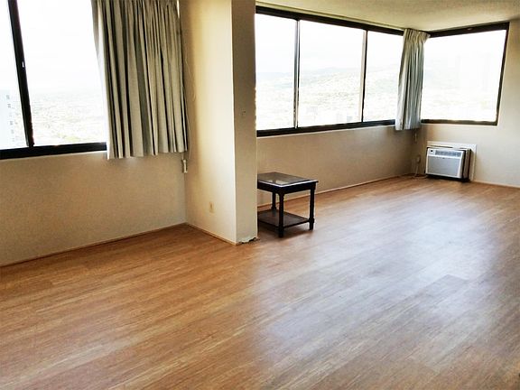 Newly renovated 2 bedroom, 1 bath unit conveniently located in Downtown. Corner unit with 30th floor mauka views. New kitchen cabinets and counters, new vinyl plank flooring, new paint, new refrigerator, new dishwasher, new Samsung washer and dryer, new AC in living and bedroom. Perfect location for walking to work in downtown. Secured building with newly renovated common areas. Huge recreation area with BBQs and big swimming pool. One up front garage parking space close to entry included. Water and Sewer included in the rent, Tenant pays electricity.