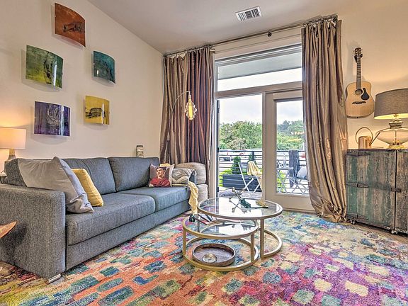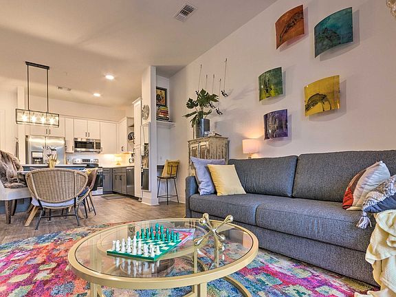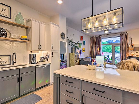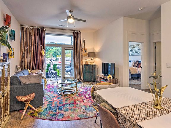 Experience urban sophistication at its finest with this exquisite one bedroom condo in the heart of Downtown Asheville. Located just steps from the vibrant South Slope and Biltmore Avenue, this one-bedroom unit was built in 2017 and features designer furnishings, work by local artists, and everything you need to enjoy a comfortable lifestyle. The unit provides high quality kitchenware, and linens and towels. It has a king-sized bed in the bedroom along with a full-size sleeper sofa in the living room. The spacious bathroom has a double vanity and large shower to accommodate multiple guests. There's also a washer/dryer if you need to freshen up your wardrobe while you're here! Some of the comments received from previous AirBnB guests who stayed at this 5 star vacation rental home are 'The best Airbnb we have ever stayed at due to its downtown location, the quiet, free parking, beautiful decor, its high quality finishes and cool design.' This home is fully furnished and is available for a 6 month or a 12 month rental period. Tenants are responsible for electricity and internet. All other utilities will be paid by the owner. One small dog would be considered with a refundable pet deposit. The 55 South Market building is a residential condo development completed in 2018. The first two levels are reserved for short-term guests, and the upper floors are all owner-occupied or rented long-term. Modern and luxurious, the eco-friendly condos feature 10' ceilings, smart home technology, and beautifully chosen finishes. The 70-unit building also offers guests an expansive indoor/outdoor community area with fire table seating, gaming area, and grilling station.