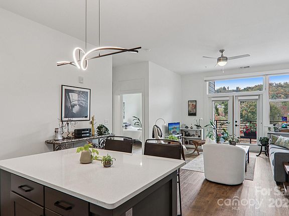 This tidy, well-appointed 4th floor condo strikes the perfect balance between natural beauty and downtown appeal,  offering mountain ridge views from every window, yet being only a block from Biltmore Avenue and all of the dining, shopping, galleries, and breweries Asheville is famous for. The home’s 10’ ceiling, neutral palette, LVP flooring, and modern finishes create an open feel throughout.