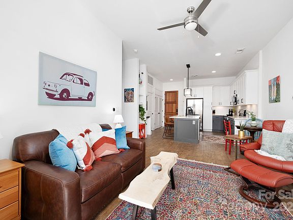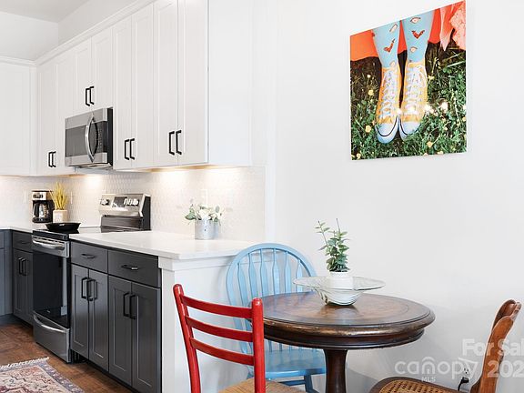 With an incredible location in the heart of downtown Asheville, NC. this well designed, top floor luxury condo benefits from mountain and city views and Asheville's lively downtown scene. The condo lives comfortably with an open floor plan, modern sleek finishes, spacious primary bedroom, large double-vanity bathroom and walk in closet. Terrific natural light and sunset views. Community spaces feature a meeting room and multiple inviting spaces for larger gatherings. Enjoy the community kitchen and lounge or stroll onto the terrace with ample outdoor seating, gas grills and firepit. Also included is secure, covered parking.