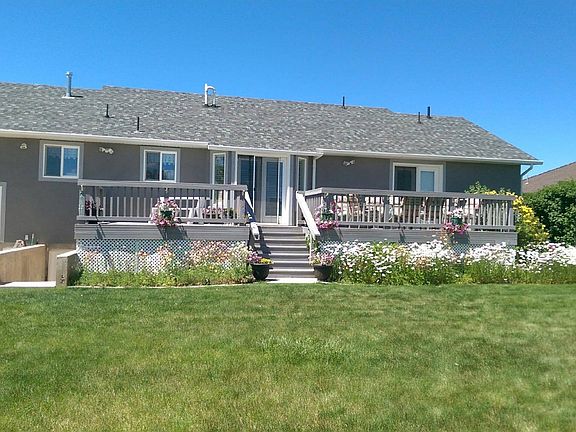 MOVE IN READY! 1400 sq ft on each level Natural Gas Fireplace in large basement family room Insulated garage door & built in storage Living room upstairs with crown molding Double oven & solid oak cabinets in kitchen French doors in dining room & master that open to back deck Large city lot overlooking Roosevelt Automatic sprinkling system uses secondary water Newly Roofed- 30 year shingles New interior doors & electric hot water heater Close to churches, parks and schools!