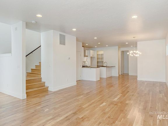 OPEN HOUSE SAT Feb 10th from 1-4pm! Rare Find! LOCATION! Located in the heart of Eagle, Idaho you cannot miss this beautyl Walk or bike to Downtown Eagle! Custom and high quality home built for a low maintenance living. Real hardwood floors throughout this open concept living. Kitchen with quartz counters, full tile backsplash, pantry, under cabinet lighting, stainless appliances and gas cooktop! Large windows with TONS of natural light. 4 bedrooms (or three bedrooms and a loft) with 4 bathrooms. Primary suite upstairs or smaller primary suite downstairs! Upstairs primary complete with soaker tub, dual vanities, walk in closet and tile walk in shower. Enjoy evenings on the rooftop patio complete with gas fireplace! HVAC with separate zones. 8 ft garage door!