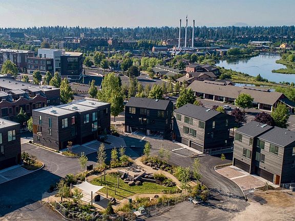 Basecamp, 25 graciously conceived luxury townhomes, was designed for the discerning Bendite who wants the best of all worlds: thoughtful architecture & the best location in town -- within walking distance of downtown & with easy access to the outdoors. The stylish homes feature open floor plans, floor-to-ceiling windows, luxurious kitchens, premium finishes & 2-car garages. Most units have separate studios (legal ADUs) on the ground floor. This 3-bed/2.5-bath Deschutes floor plan unit is 2,381 Sq Ft (including the 300 Sq Ft studio). Photos of like model.
