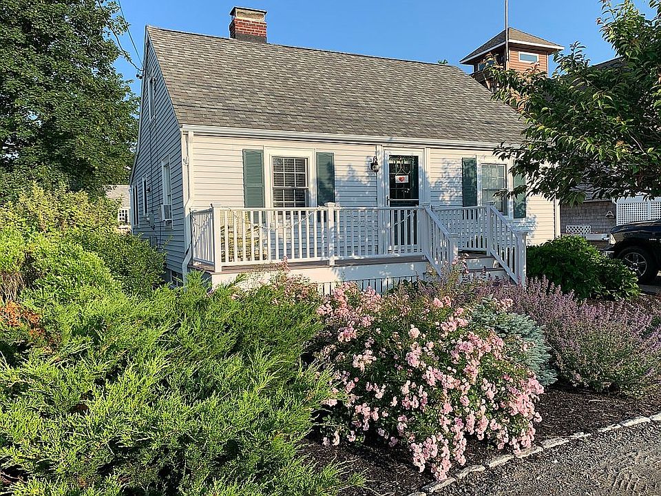 Vacationers, short- and long term renters: See this adorable 2 bedroom sun filled home just a short walk to Sunrise Beach and convenient to shops and restaurants. Start your day with peek-a-boo views of the ocean from the front deck. This home has everything you need for year round living including living room with fireplace and updated kitchen. Hardwood floors in living room, kitchen and bedrooms. The kitchen is perfect size for entertaining and is equipped with closet with stacked washer/dryer. Fenced in backyard with beautiful circular brick patio, surrounded by professionally landscaped beds, is wonderful for relaxing and entertaining. Storage is not be a problem as this home has a full attic with 2 new windows. Refrigerator, gas stove, and microwave included.