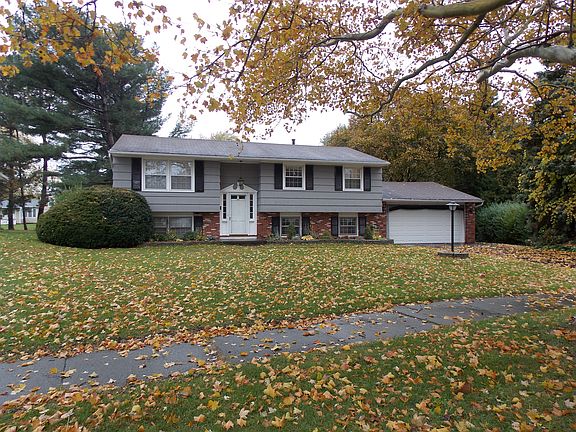 This 3/4BR, 1.5BA bi-level is in GREAT SHAPE! Special features include: classic wood shingle exterior w/brick front, large 2 car attached garage w/new door & electric opener(2-3 yr), new 200 amp. electric service, high efficiency furnace & h2o tank in 2010, new windows on upper level, Brazilian cherry laminate floor in dining room & kitchen, refinished cherry kitchen cabinets, new countertops, central air, 6 panel doors, slider off upper level to large deck overlooking park like yard, lower level flagstone patio & sunken hot tub, above ground pool w/3 yr pump-filter & 1yr liner, & MORE!!