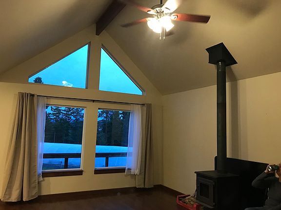 View of Flathead lake on 4 acre parcel, Five minutes to Lake and recreation. Gardening. Hot tub, stove, fridge, dishwasher, washer and dryer. Heat pump and air conditioning. Wood stove. Internet available. Wrap around deck. Deer and turkey in the yard. Tenant pays electric and internet. Water furnished.