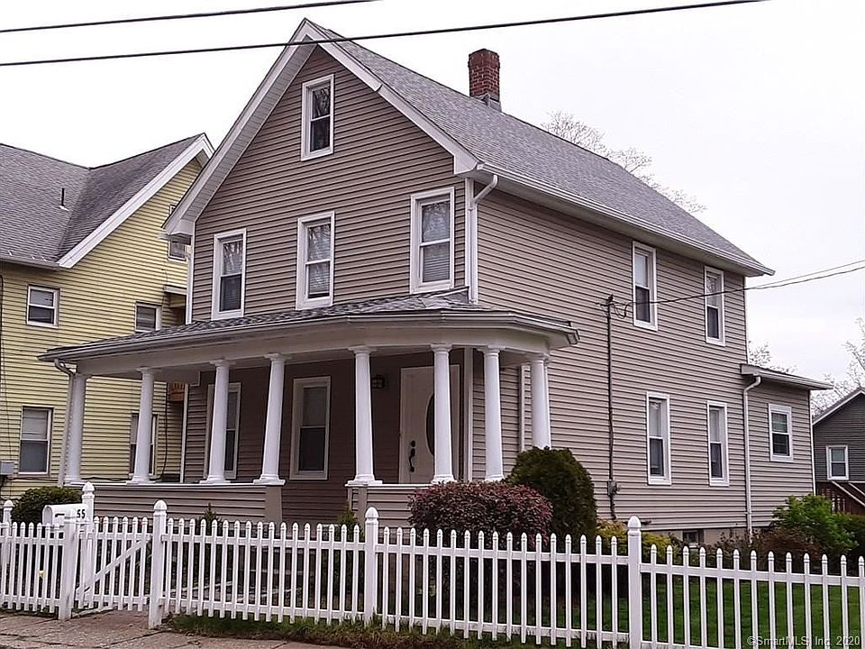 Welcome to this lovingly cared for charming Victorian. Spacious wrap around front porch, newer siding, windows, roof, updated colors and laminate flooring throughout. Updated Kitchen features beautiful cabinetry, Granite Countertops, beveled subway tile backsplash and Stainless Appliances. Full bath and Laundry room are located off the kitchen and 1 Bedroom finishes the main level. Upper level features additional Living Room/Den, 2 Bedrooms, Full bath and walk up access to the attic. Lower level offer full basement with dual 40 gallon hot water heaters and outside access. Beautiful level yard for your enjoyment. Easy access to highways I84 & Rt 8, local shops, restaurants, parks and Golf course. Turn the key and move right in. Property is being used as a 1 family house although Town lists property as a 2 family residence. Live Streaming available