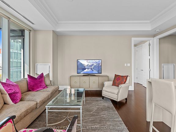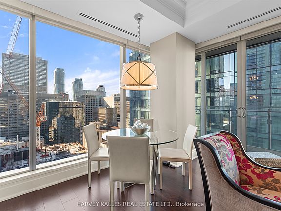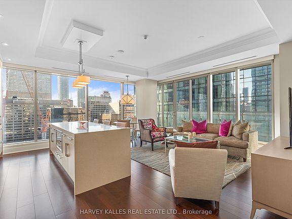 An icon of refined living in one of Toronto's most distinguished addresses. Welcome to Suite 1805 at 55 Scollard, within the legendary Four Seasons Private Residences. Architectural grace, hotel-inspired service, and effortless sophistication define every moment in this exceptional two-bed, two-bath residence spanning approximately 1,265 sq.ft. From the moment you enter, calm refinement prevails. Expansive floor-to-ceiling windows bathe the interiors in natural light, accentuating clean lines, rich finishes, and a timeless modern aesthetic. The open-concept living and dining areas invite both relaxation and entertaining, anchored by sweeping views of the Yorkville skyline. The chef's kitchen combines beauty and performance with integrated Miele, Sub-Zero, and Panasonic appliances, a gas range, polished granite surfaces, and generous cabinetry, perfect for casual mornings or elegant evenings. Enjoy your morning coffee at the granite waterfall kitchen island, equipped with additional storage and spacious bar seating. The primary suite is a private sanctuary featuring a spa-inspired five-piece ensuite with a deep soaking tub, glass shower, double vanity, and refined marble finishes. A custom walk-in closet with sleek built-ins and a pocket door blends form and function. The second bedroom offers flexibility for guests, work, or leisure. Residents enjoy exclusive access to dedicated amenities and full hotel privileges: 24-hour concierge and valet, world-class fitness centre, indoor pool, and direct access to the Four Seasons Spa. Just steps from Yorkville's finest boutiques, Michelin-starred dining, and tranquil parks, this address offers the ultimate balance of sophistication and convenience, an incomparable opportunity to own within Toronto's most iconic residence. Extras: One owned parking space & locker, ensuite laundry in the primary, automatic roller blinds throughout, and more! An incomparable opportunity to own a piece of Toronto's most iconic address!